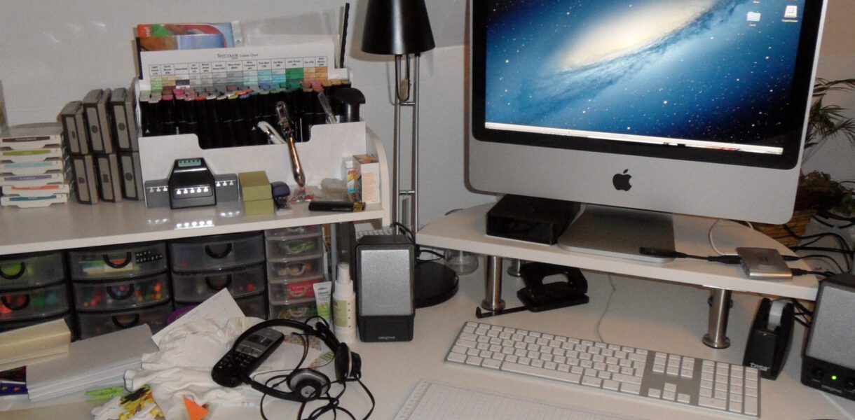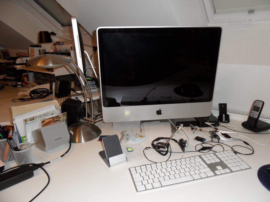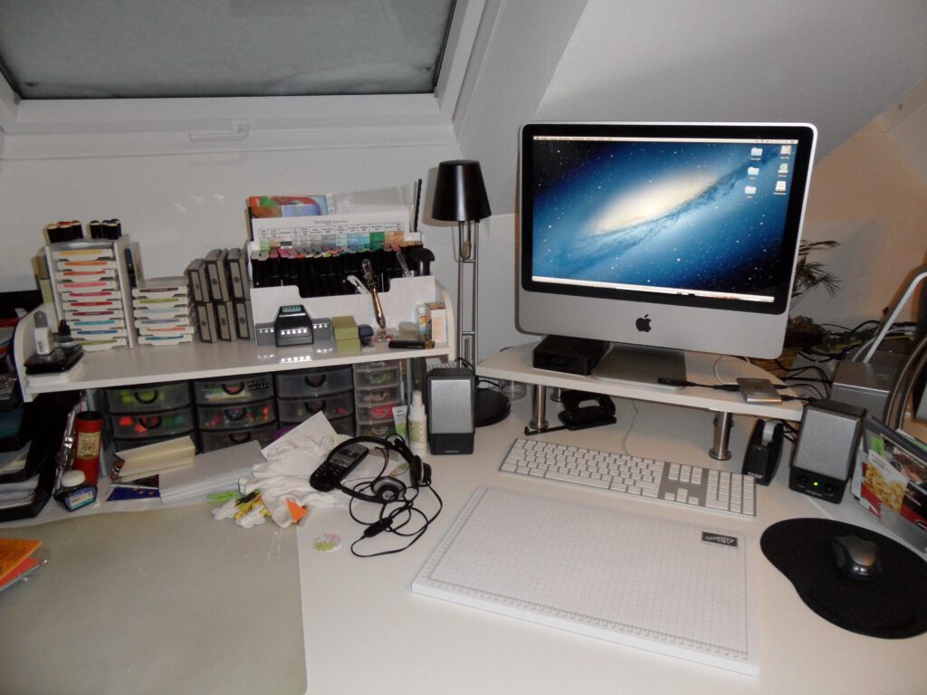 Hier noch der neue Computer in meiner Bastelecke und der „große Bruder“ in der Schreibtischecke meines Freundes. So langsam haben wir glaub ich alles, was man von Apple haben kann 😉