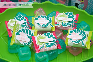 Ich hab mir für heute ein kleines Dankeschön für Gäste überlegt, die zu einer tropischen Sommerparty eingeladen werden. Vielleicht sogar ein Geburtstag und man bedankt sich für die Geschenke, die man bekommen hat.