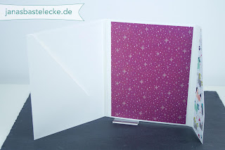 Nach der Einhornparty gibt es hoffentlich viele tolle Erinnerungen, die ihr dokumentieren wollt. Grußkarten, Geschenkanhänger und andere Erinnerungsstücke könnt ihr in diesem Minialbum aufbewahren. Und wenn ihr nicht so viele Grußkarten habt um alle Schnüre innen zu besetzen, könnt ihr dort einfach selbst eine Klappkarte machen und da Bilder von der Party aufkleben.