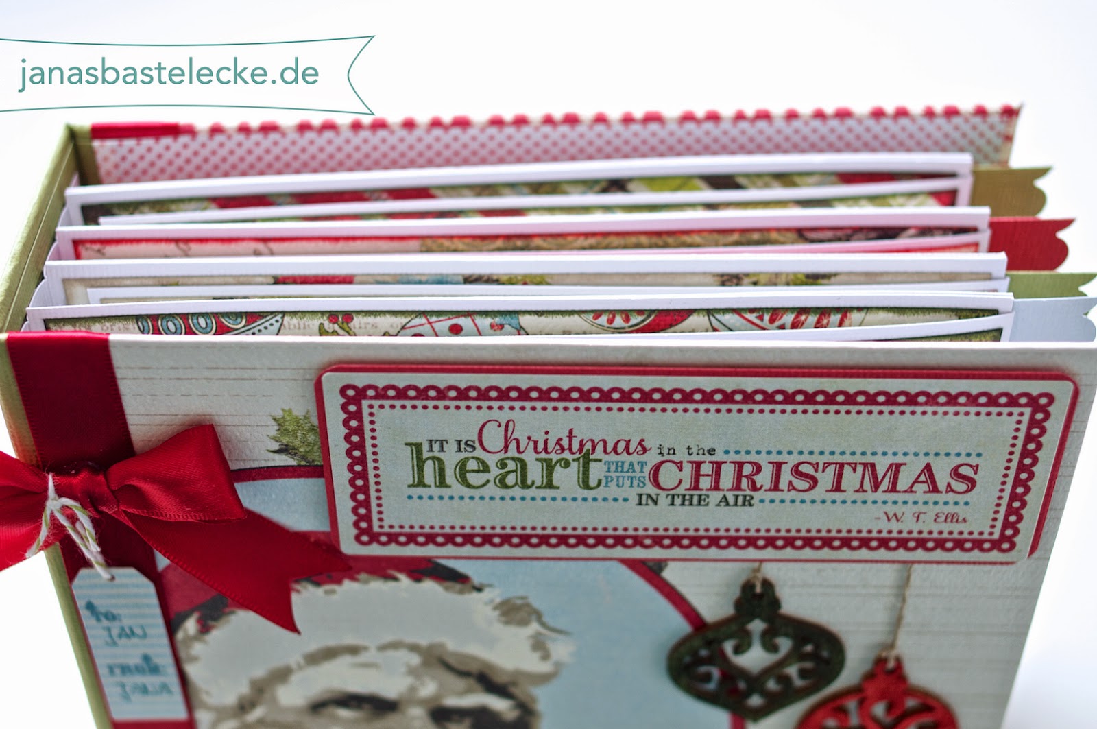 Mein erstes Projekt ist also ein Weihnachts-Fotoalbum geworden, das ich komplett selbst gemacht habe. Für die Bindung habe ich die versteckte Bindung genommen und insgesamt 4 Seitenelemente daran befestigt.