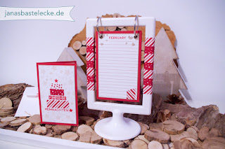 Damit ich ihr noch einen kleine Gruß schreiben kann und auch etwas Weihnachtliches dabei ist, habe ich ihr noch eine kleine, passende Karte dazu gemacht. Die Basis der Kärtchen im Rahmen in Glutrot ist 12,5 cm x 8 cm und für das Kärtchen hab ich die Basis 12,5 cm x 16 cm gemacht und bei 8 cm gefalzt.