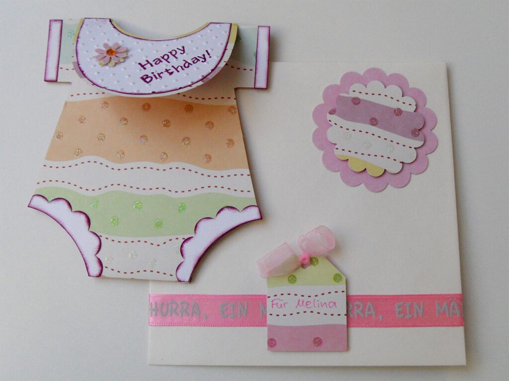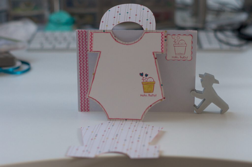 Ein Freund von mir ist Vater geworden und ich wollte eine besondere Karte gestalten. Auf Youtube hab ich dann ein amerikanisches Video gefunden Onesie Baby Shower Card!!! mit einer Karte, die aussieht wie ein Baby Body mit Lätzchen.