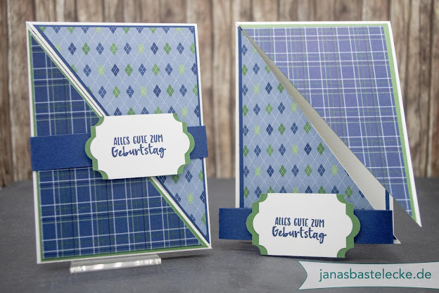 Ich habe die Karte Männerkarte genannt, weil es viele Männer gibt, die eher auf diese Farbtöne, eher gedeckter und ohne Bling und so stehen. Eine Karte entstand für den Opa von meinem Partner. Die zweite hatte ich einfachgleich mitgemacht, weil ich das A4 Papier dafür ja diagonal zurecht schneiden muss und es sich dann einfach anbietet noch eine zweite Karte zu machen.