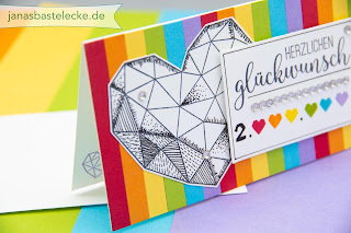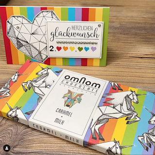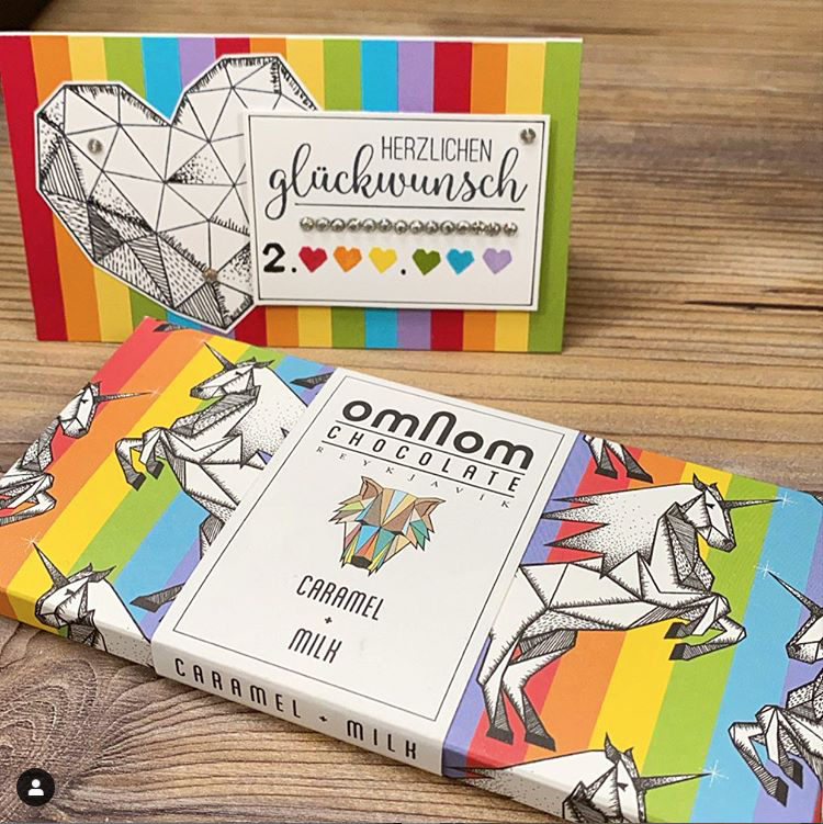 Die Einhornschokolade ist mir nicht nur wegen dem Einhorn an sich oder dem Regenbogen auf der Verpackung aufgefallen, sondern auch, weil mich die Darstellung des Einhorns so an Steffis Stempelset erinnert hat, was sie für den Meilenstein von 1.000.000 designen durfte, „Kunst mit Herz“. Und natürlich habe ich es verwendet um ihr damit eine passende Karte zur Schokolade zu machen.