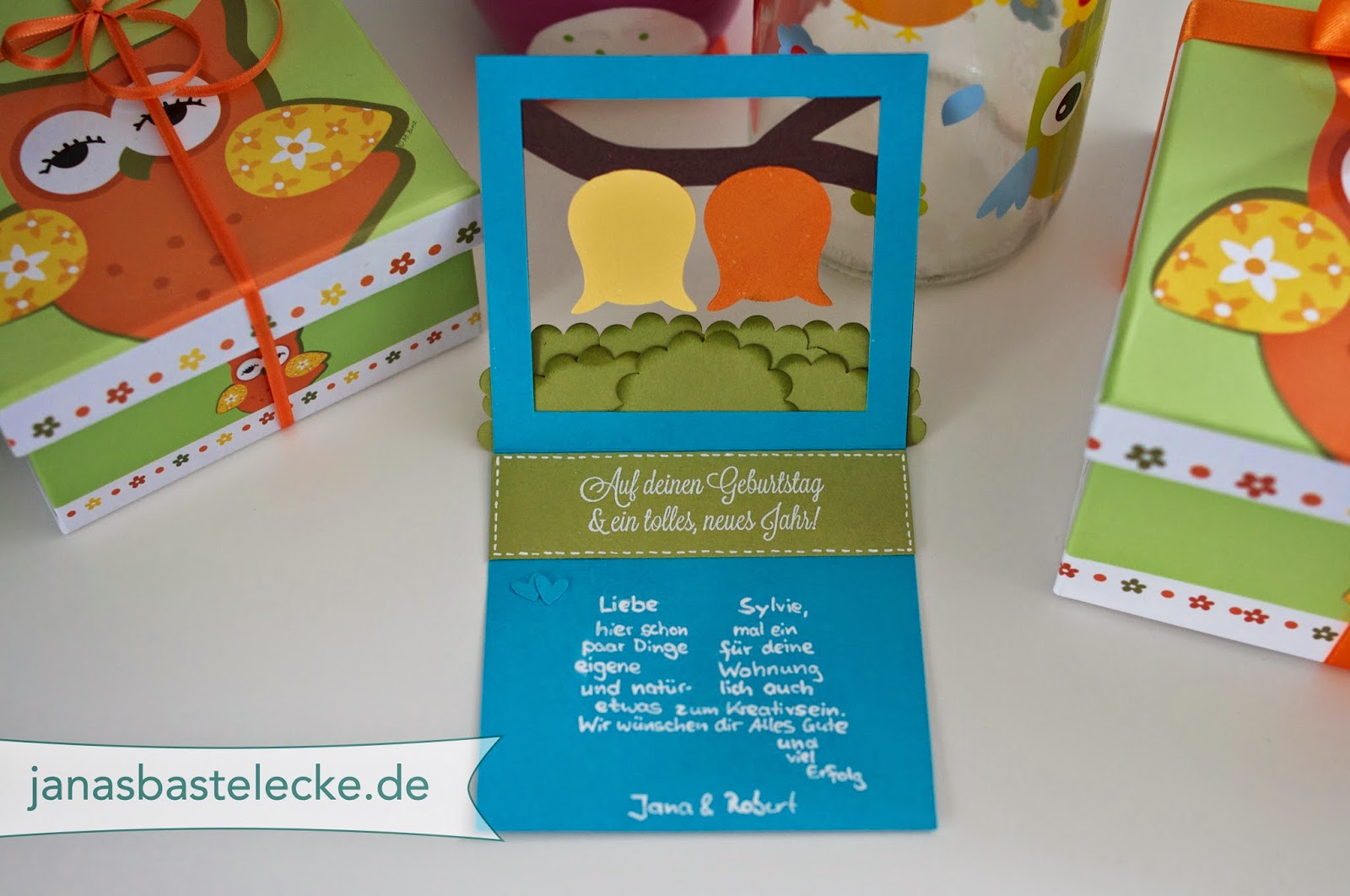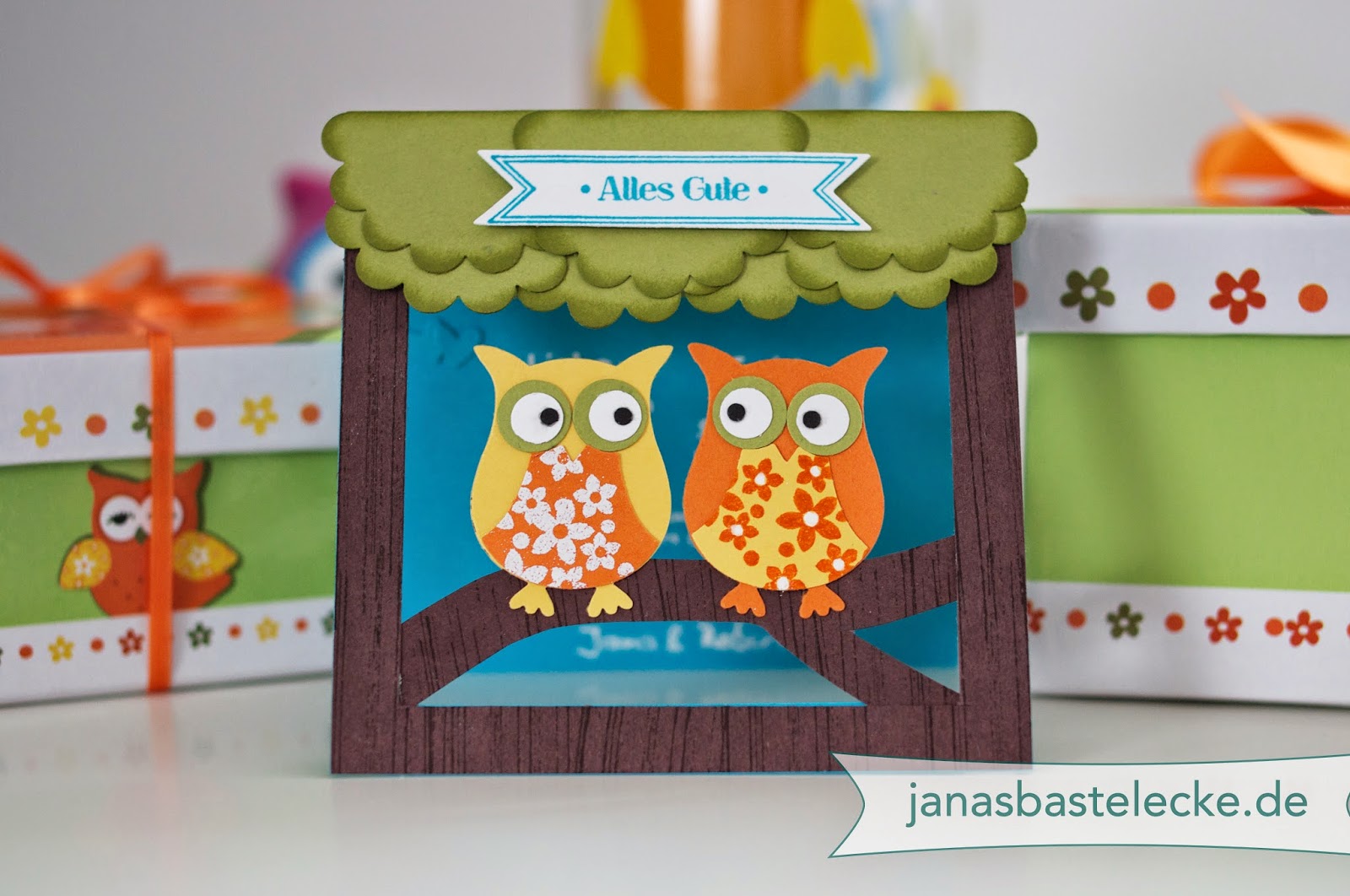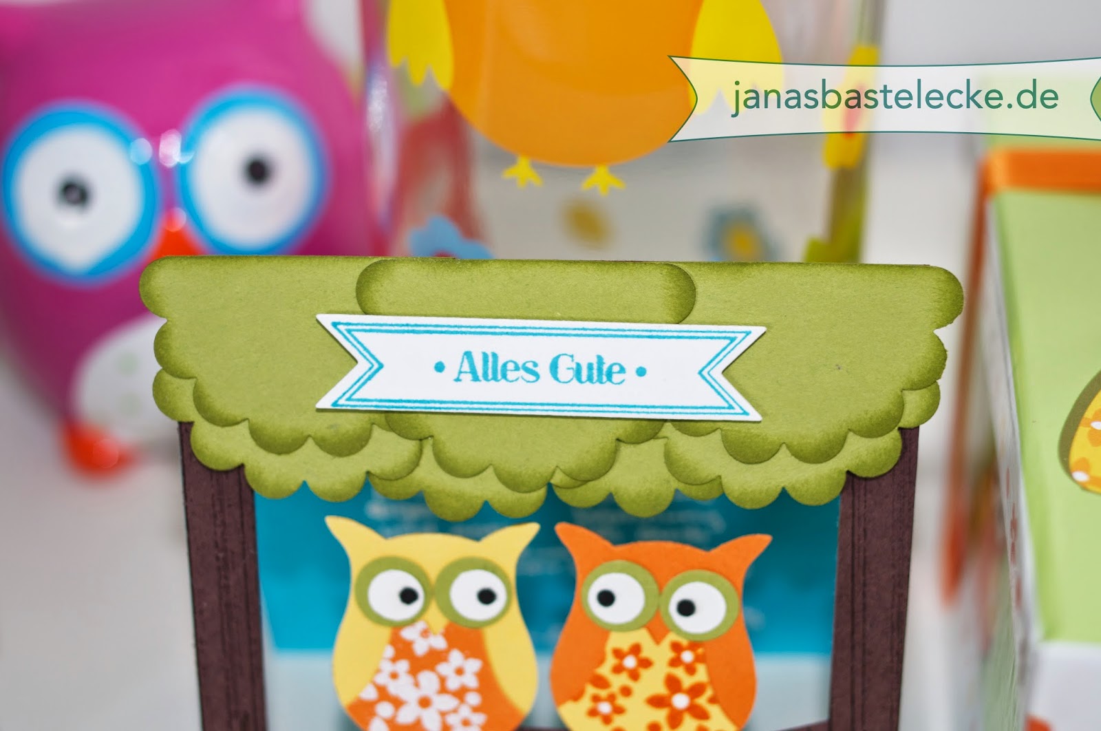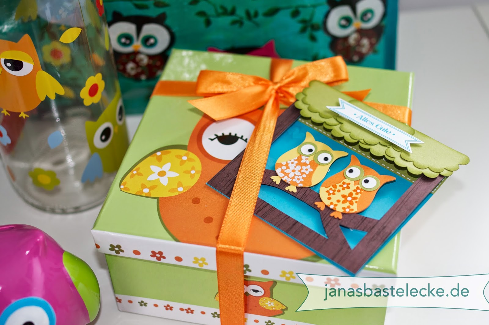 Natürlich hab ich da auch gleich wieder meine Eulen-Stanze rausgeholt und ihr auch noch eine in die Boxen reingepackt, damit sie sich selber Eulen basteln kann.