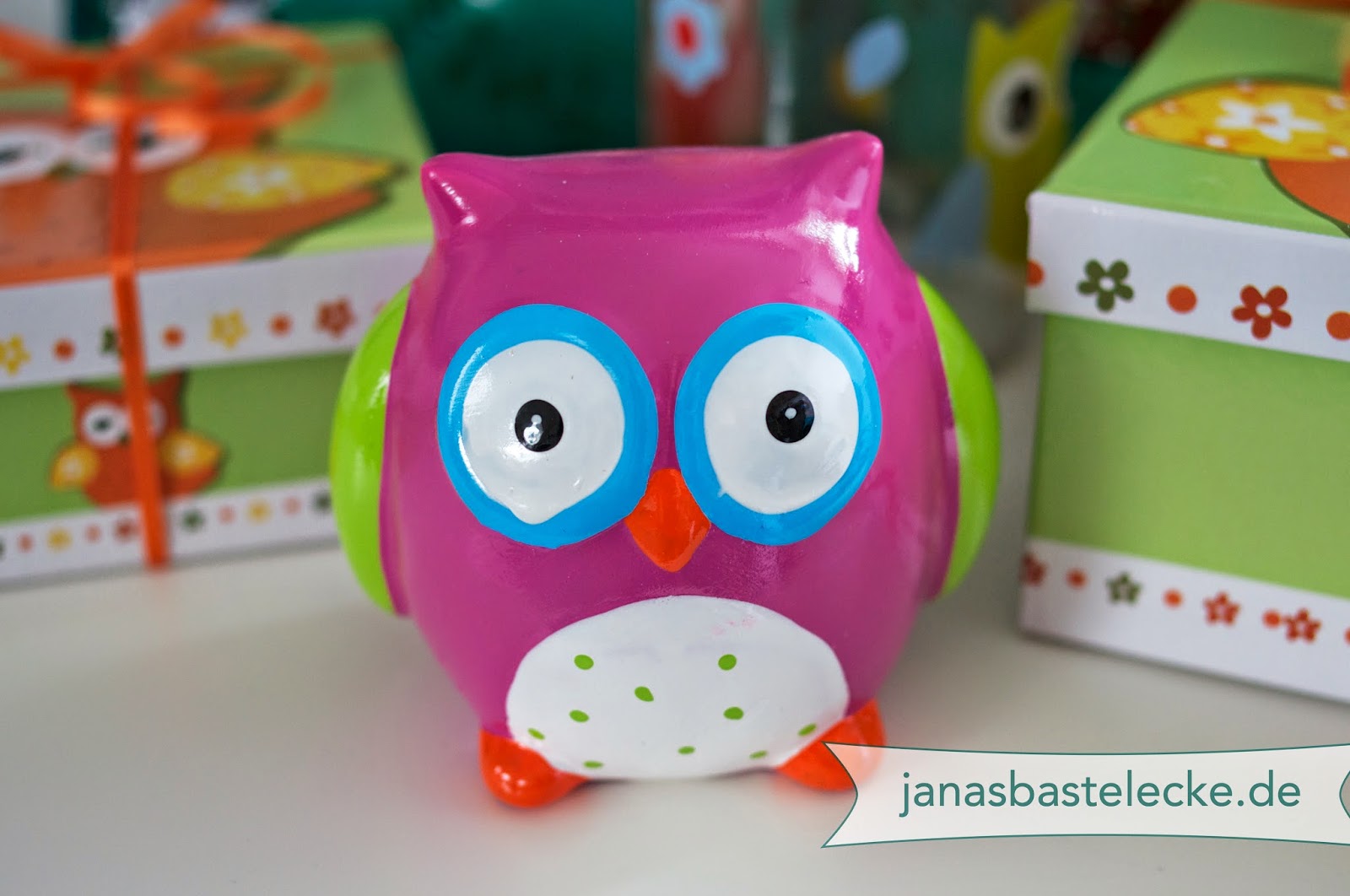 Diese Spardose hat einfach super dazu gepasst. In den Boxen sind auch noch passende Staub- und Mikrofaser-Tücher, die es auch mit Eulenmotiv gibt.