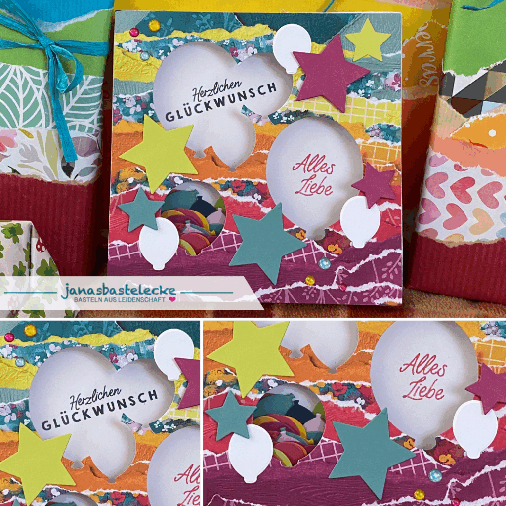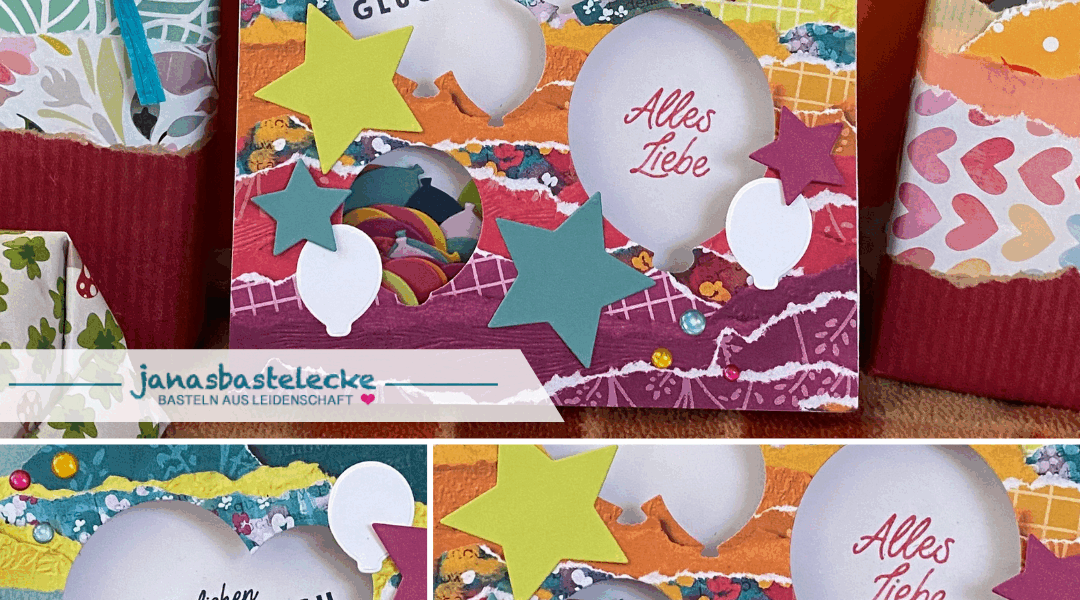 Im Video seht ihr was ich meine. Aus dem Verpackungsschutz habe ich eine Schüttelkarte für Robert zum Geburtstag kreiert, mit einem Gutschein fürs „Remastered“ in Rotterdam. Die Aufnahmen sind vom Juni 2023, weshalb bestimmte Produkte auch nicht mehr bei Stampin‘ Up! erhältlich sind. Leider bin ich mal wieder nicht dazu gekommen das Video rechtzeitig zu schneiden.