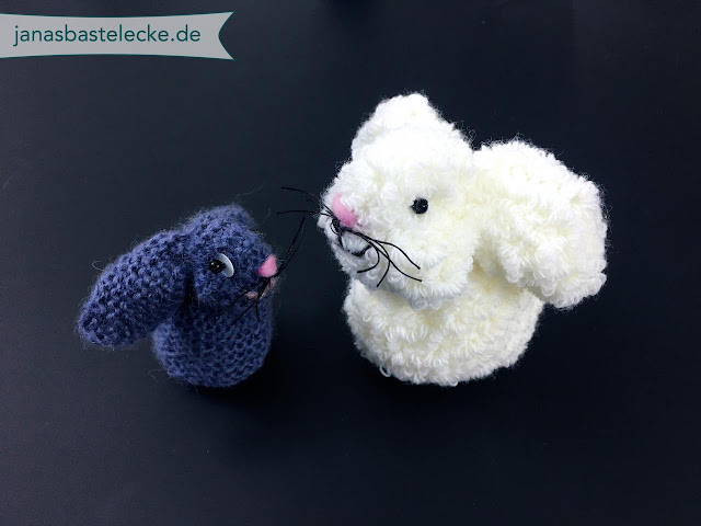 Im Video zeigt euch meine Mutter aber nicht das Stricken, sondern wie ihr aus einem Quadrat aus rechten Maschen den weißen Hasen machen könnt.
