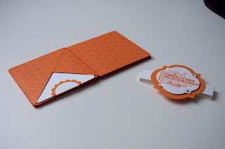 Um das Album zu verschließen habe ich einen Papierstreifen („Flüsterweiß“) zurecht geschnitten, ich glaube 2 cm und dann eben so lang, dass die beiden Enden etwas überlappen. Um die Enden dann zu verdecken hab ich noch den Gruß gestempelt, mit dem Stempelset „Ein duftes Dutzend“.