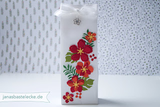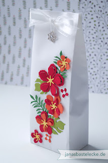 Aber viel wichtiger ist die Verzierung, die ich mit Hilfe der Framelits Pflanzen-Potpourri gemacht habe. Ich find damit kann man wirklich tolle Blumen machen, die einen 3D-Wirkung haben und ziemlich realistisch aussehen für Papierblumen.