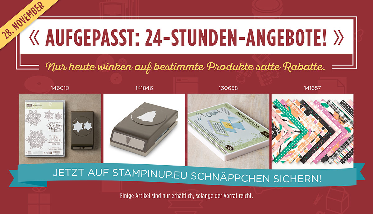In der heutige Aktion sind teilweise ergänzende Produkte zu den Stempelsets dabei, die reduziert sind.