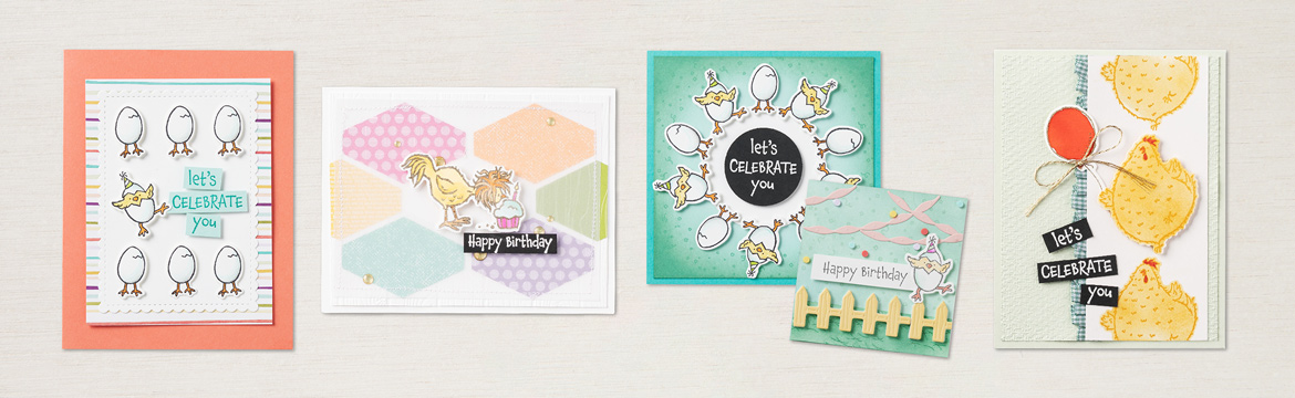 Vielleicht erinnert ihr euch noch an die Sale-A-Bration 2017, bei der es das Gratis-Stempelset „Das Gelbe vom Ei“ gab. Weil es damals so beliebt war ist es jetzt wieder zurück, aber dieses Mal mit passenden Stanzformen und einem neuen Stempelset mit den gleichen witzigen Hühnern.