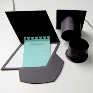Die beiden Stempelsets, die ich verwendet habe, sind „Sweet Farewell“ (155772, Jahreskatalog S. 84) und „Kreative Tage“ (155525, Jahreskatalog S. 18).Farbkarton hab ich in „Grundweiß“, „Glutrot“ und „Mitternachtsblau“ verwendet. Für das Fenster vorne, durch das man den Kalender sieht, habe ich Klarsichtfolie verwendet.