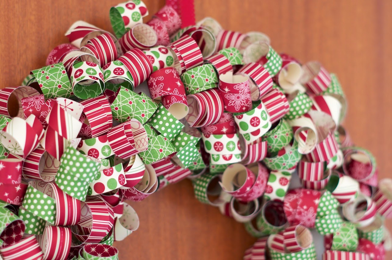 Heute gibt’s einen Türkranz, gebastelt aus Styropor und Papier. Der schmückt jetzt unsere Wohnungstür. Kann man in den unterschiedlichsten Größen machen je nach Styroporring. Oder aber auch in anderen Formen. Ich hab auch Videos gesehen, in denen Styroporkegel verwendet wurden und dann ein Papierweihnachtsbaum entstanden ist. Die Vorlage hab ich von stampwithtami.